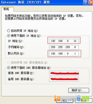 2. 路由器的默认管理地址是http://192.168.0.1,那么计算机地址就应该是与路由器的管理地址同一个网段(无路由器配置经验的用户,请单机连接路由器的LAN1口,避免IP冲突),选择电脑右下角的开始—网络连接—本地连接,对其点右键-属性。选中TCP/IP之后。手动输入IP。