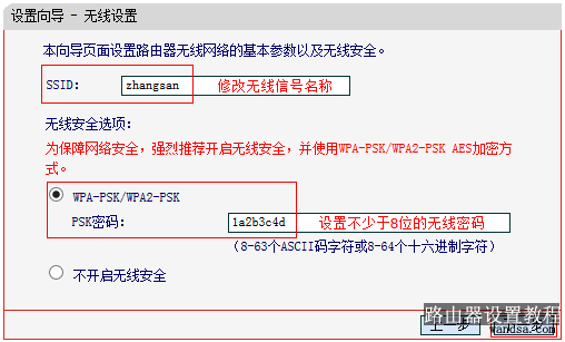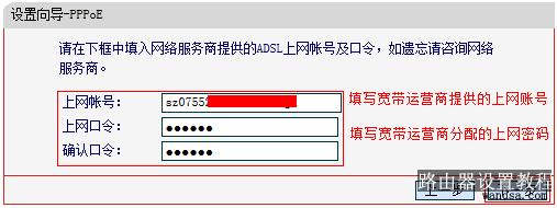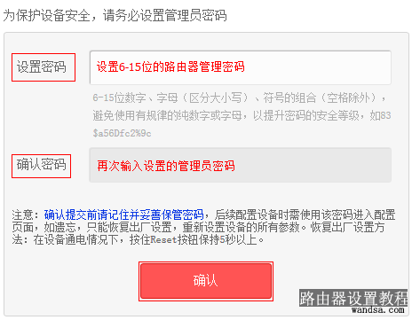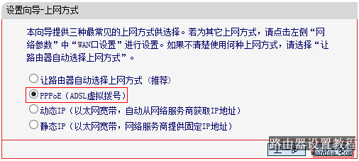 设置步骤: 没有使用路由器时,电脑直接连接宽带上网,现在使用路由器共用宽带上网,则需要用路由器来直接连接宽带。根据入户宽带线路的不同,可以分为网线、电话线、光纤三种接入方式。具体如何连接请参考下列动态图: 注意:宽带线一定连接到路由器WAN口(部分路由器WAN口的颜色与LAN口不同),电脑连接1\2\3\4任意一个端口。 1、输入路由器管理地址 打开电脑桌面上的IE浏览器,清空地址栏并输入路由器管理地址192.168.1.1,回车后弹出登录框。 注意:部分路由器使用melogin.cn登录,路由器的具体管理地址建议在壳体背面的标贴上查看。 2、登录管理界面 部分路由器需要输入管理用户名、密码,均输入admin即可。 初次进入路由器管理界面,为了保障您的设备安全,需要设置管理路由器的密码,请根据界面提示进行设置。如下图: 请注意以下事项: 如果输入管理地址后无法显示,需确认操作电脑已经设置为自动获取IP地址,设置方法可参考:http://www.wandsa.com/mercurycom/23.html 如无法登录管理界面,请点击参考详细排查方法:http://www.wandsa.com/mercurycom/24.html 1、开始设置向导 进入路由器的管理界面后,点击 设置向导,点击 下一步。 2、选择上网方式 如果您通过宽带拨号,则上网方式选择 PPPoE(ADSL虚拟拨号),点击 下一步。 不了解上网方式? 3、输入宽带上网账号和密码 填入宽带服务商提供的上网账号和密码,并确认该账号密码输入正确,注意区分字母大小写。点击 下一步。 4、设置无线参数 建议修改 SSID (即无线网络名称),选择 WPA-PSK/WPA2-PSK 的加密方式,在 PSK密码 的位置设置无线密码,点击 下一步。 5、设置完成 点击 完成,设置向导完成。 注意:部分路由器显示的是重启,点击重启,路由器会自动重启。 设置完成后,进入路由器管理界面,点击 运行状态,查看 WAN口状态,如下图框内IP地址不为0.0.0.0,则表示设置成功。 到此,网络连接成功,路由器已经设置完成。电脑连接路由器后无需进行宽带连接拨号,直接可以打开网页上网。 如果您还有其他电脑需要上网,用网线直接将电脑连接在1\2\3\4接口即可尝试上网,不需要再配置路由器。如果是笔记本、手机等无线终端,无线连接(参考 无线连接)到路由器直接上网即可。 1、如果设置好,但是IP地址全部为0.0.0.0,排查方法请点击:http://www.wandsa.com/fault/25.html 2、如果IP地址正常,但是电脑、手机等无法上网,排查方法请点击:http://www.wandsa.com/fault/27.html 3、如果您不了解如何设置无线终端连接无线上网,请点击参考详细设置方法:http://www.wandsa.com/mercurycom/28.html