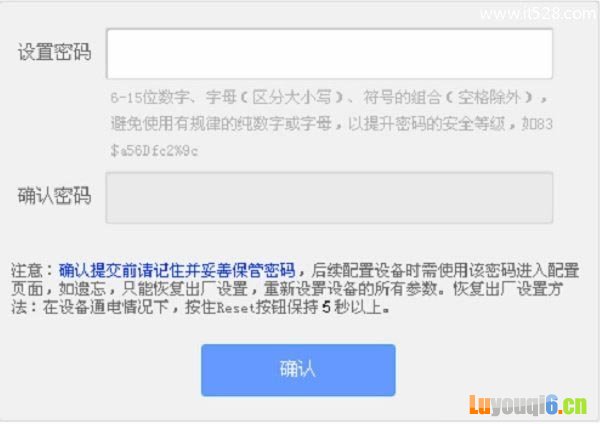 如果忘记了tplogin.cn原来的密码,或者原来的密码不是你自己设置的,造成现在无法登录到tplogin.cn设置页面了。这时候想要重新设置(修改)tplogin.cn密码,只能够先把你这台路由器恢复出厂设置;恢复出厂设置之后,再次在浏览器中输入tplogin.cn时,会自动弹出设置密码的界面,如下图所示,这时候可以重新设置tplogin.cn登录密码了。