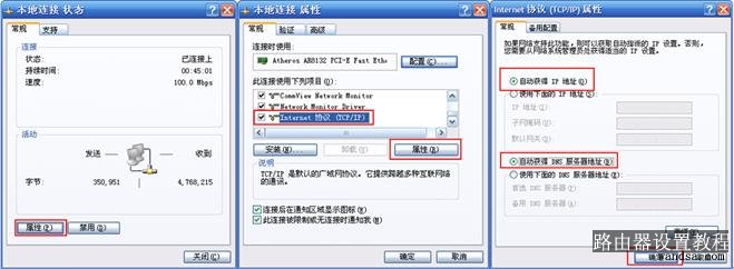 ,依次点击"打开网络和共享中心--更改适配器设置/管理网络连接--右击本地连接--属性"(或者点击"开始按钮--控制面板--网络和Internet--网络和共享中心--更改适配器设置/管理网络连接--右击本地连接--属性") ,然后按照下图配置即可。